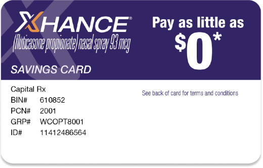 Eligible, commercially insured patients with coverage for XHANCE pay as little as $0 using the XHANCE savings card*