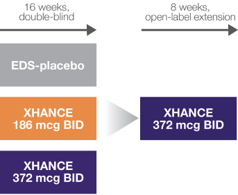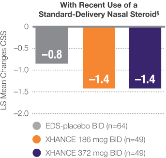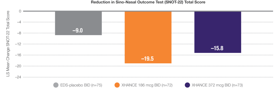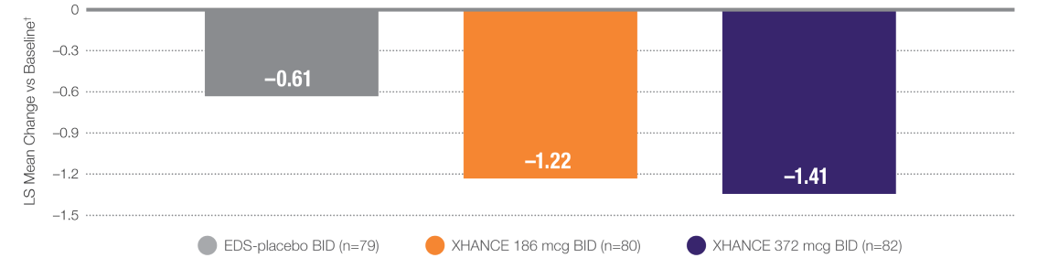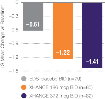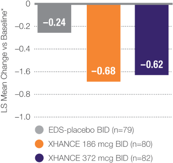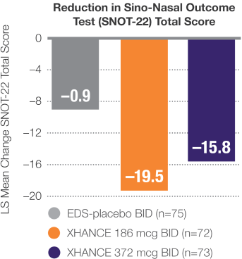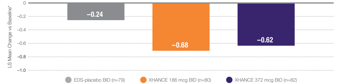 XHANCE 186 mcg group vs EDS-placebo, and –0.9 (95% CI: –1.5, –0.4) in the XHANCE 372 mcg group vs EDS-placebo.1-3