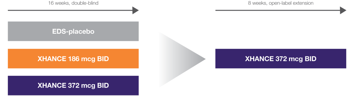 Baseline grade: EDS-placebo, 3.8; XHANCE 186 mcg BID, 3.9; XHANCE 372 mcg BID, 3.9.2