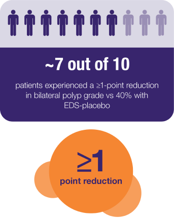 Continued reduction in bilateral nasal polyp grade during 8-week open label extension following 16-week placebo-controlled trial. All patients received 372 mcg BID during open label extension.2