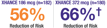 †IRR for XHANCE 372 mcg BID: 0.34 (95% CI: 0.2, 0.7; P ≤0.05) vs EDS-placebo; type I error-controlled analysis.2
